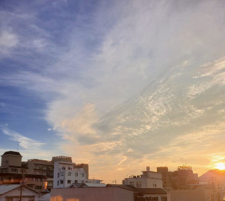 三原店に来ると空を見上げるのが凄い好きで、不思議な雲が良く現れます。私的には龍雲が良く見れます。今日食事しながら見てると龍雲が…慌てて携帯探すけどドコ😢撮影した時にはバラけてました。三原に来ると必ず空を見上げてます。